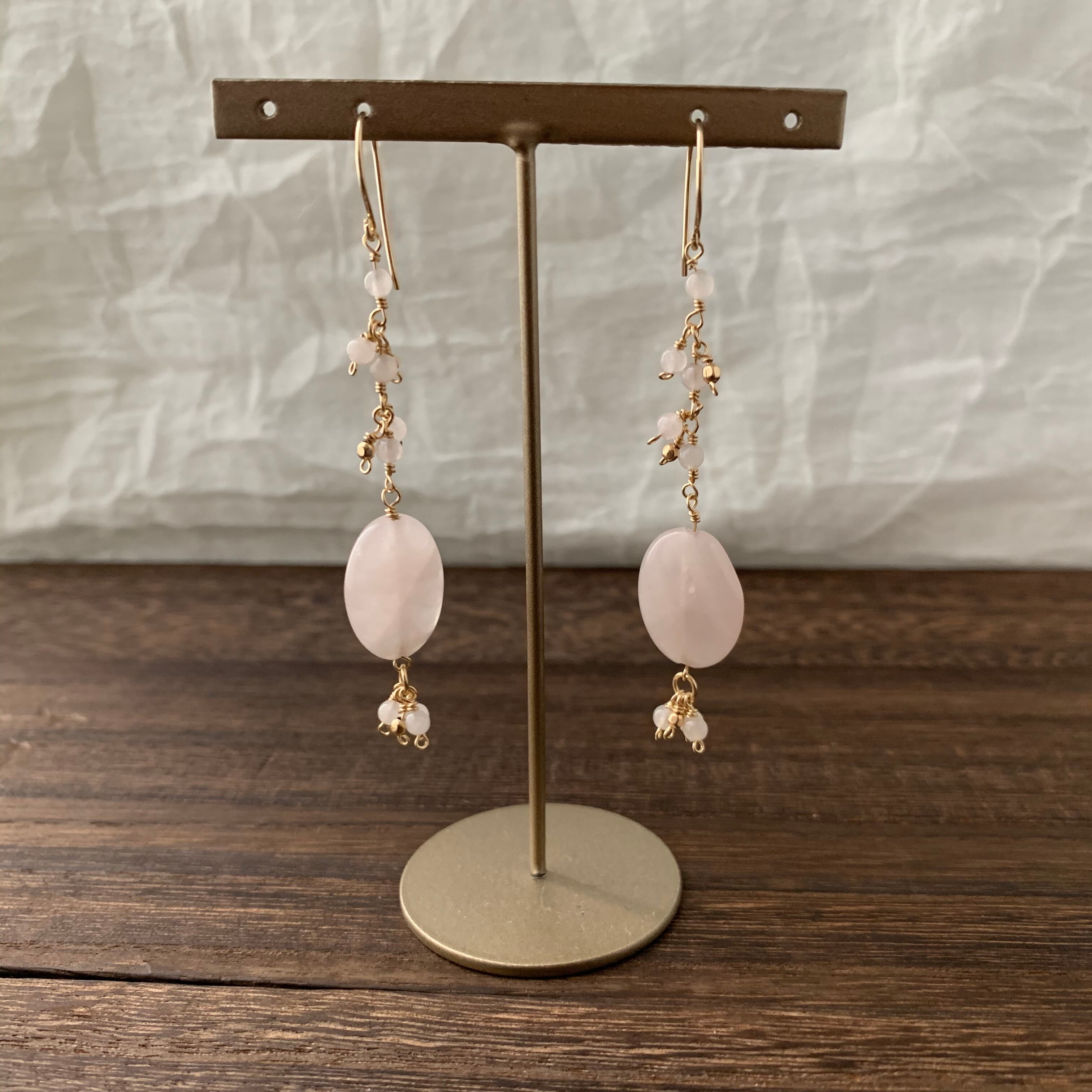 14kgfローズクォーツの揺らめくロングピアス 2105037