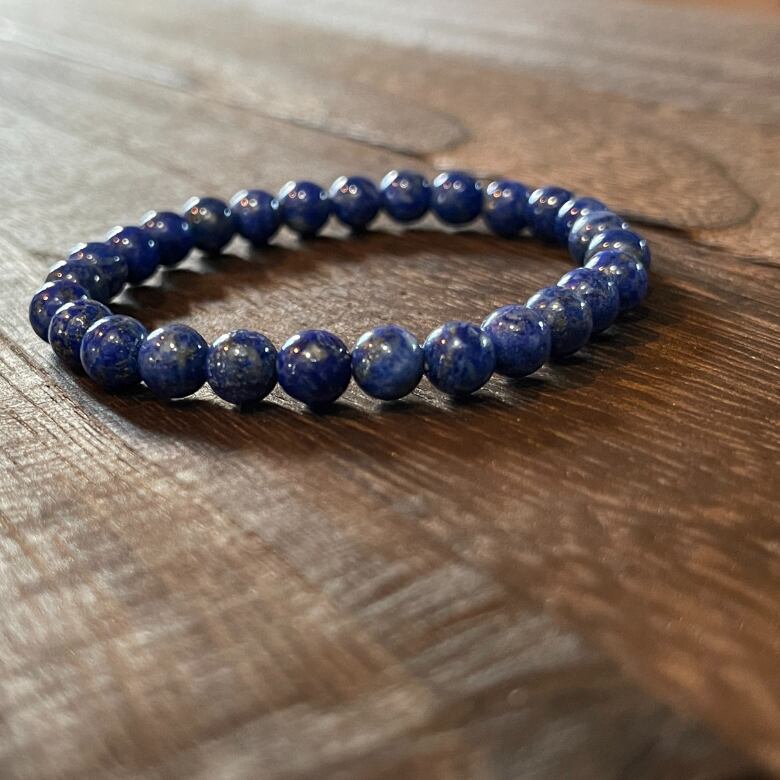 ラウンドブレスレットとしては小さめな6㎜玉を使っています。